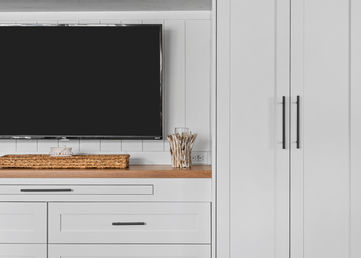 Welcome to the Hidden Harmony Project! Our clients envisioned a multi-functional built-in that would seamlessly blend into their coastal bungalow while offering impressive versatility. What initially appears as a stylish entertainment center reveals a suite of hidden features designed to enhance both functionality and aesthetics.
